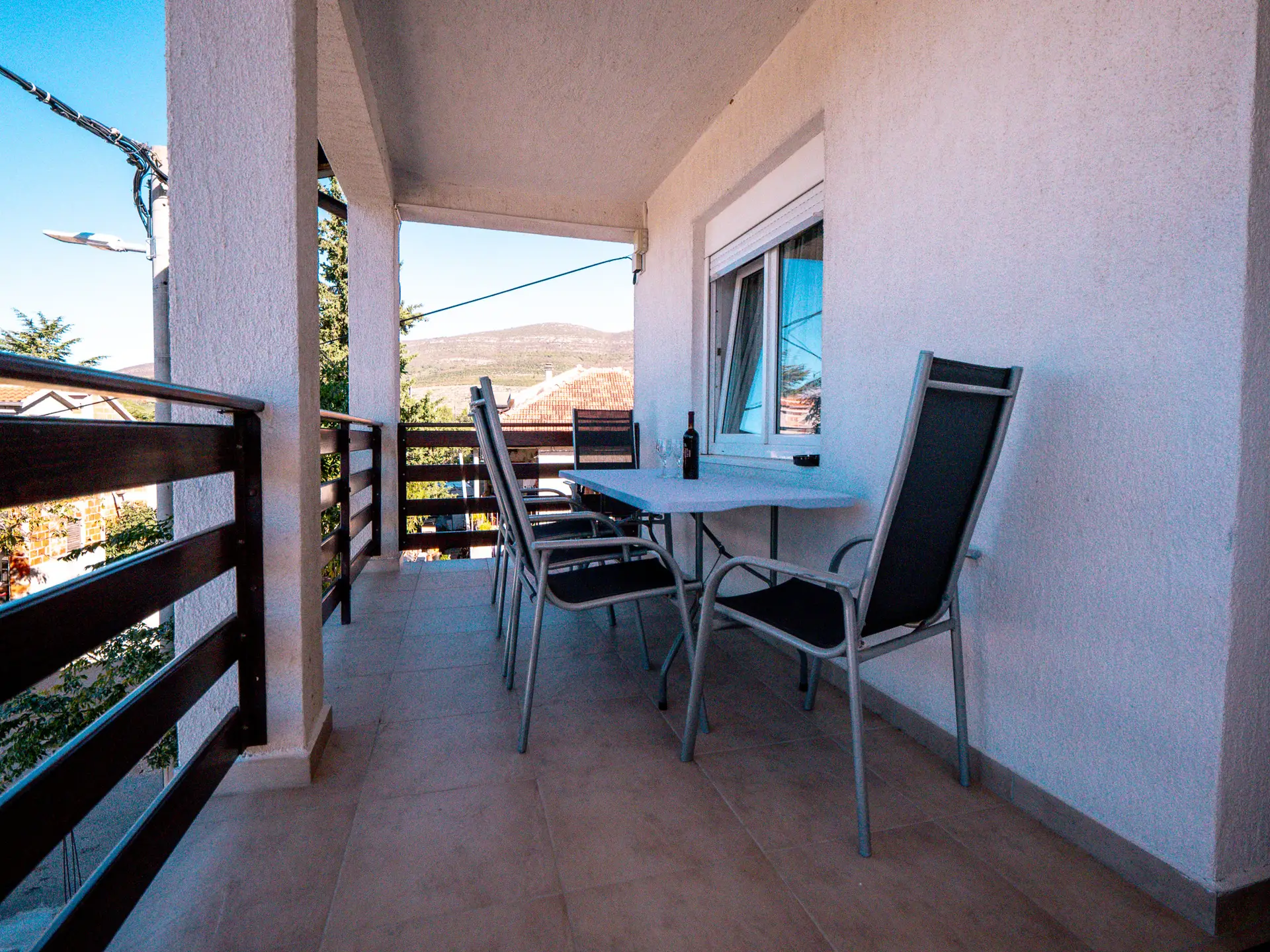 Außenbereich: Der private Balkon mit Tisch und Stühlen im Freien laden zu gemütlichen Stunden unter freiem Himmel ein.